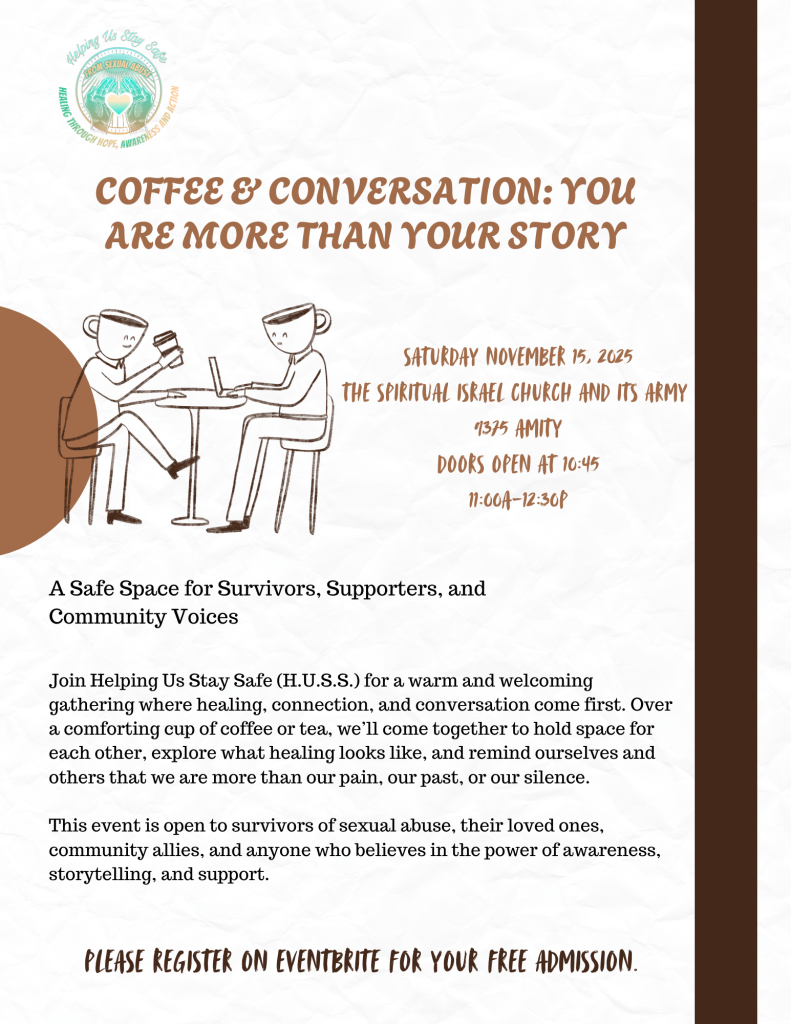A warm and welcoming morning where survivors, supporters, and allies connect over coffee, compassion, and community storytelling.